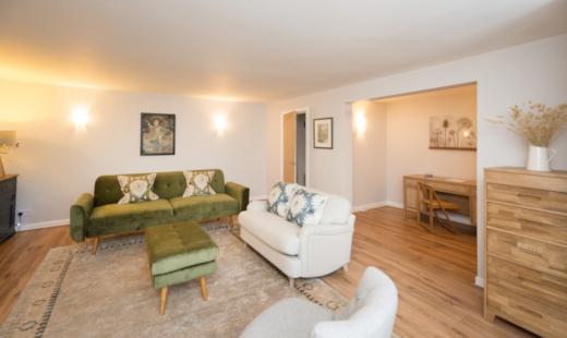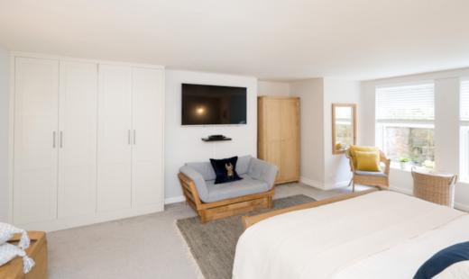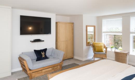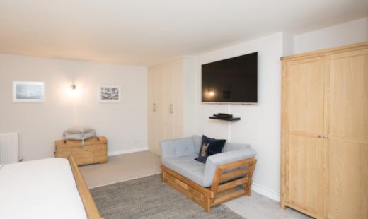 The Garden Apartment has just been tastefully renovated and all of the rooms are extremely spacious, offering a large lounge area in which to relax, a Super King bedroom, bathroom with bath and walk-in shower and the kitchen is also spacious with all the appliances you would require and breakfast bar seating. There is a large patio area, for those sunny days if you wish to sit out, parking is on road, free all day and every day.